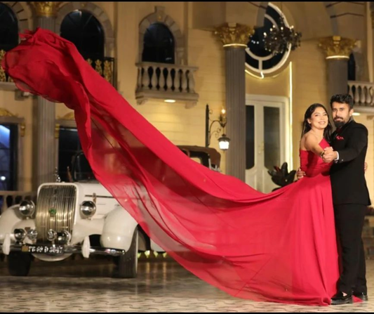 Cherry Red Full Sleeves Mega Trail Prewedding Gown