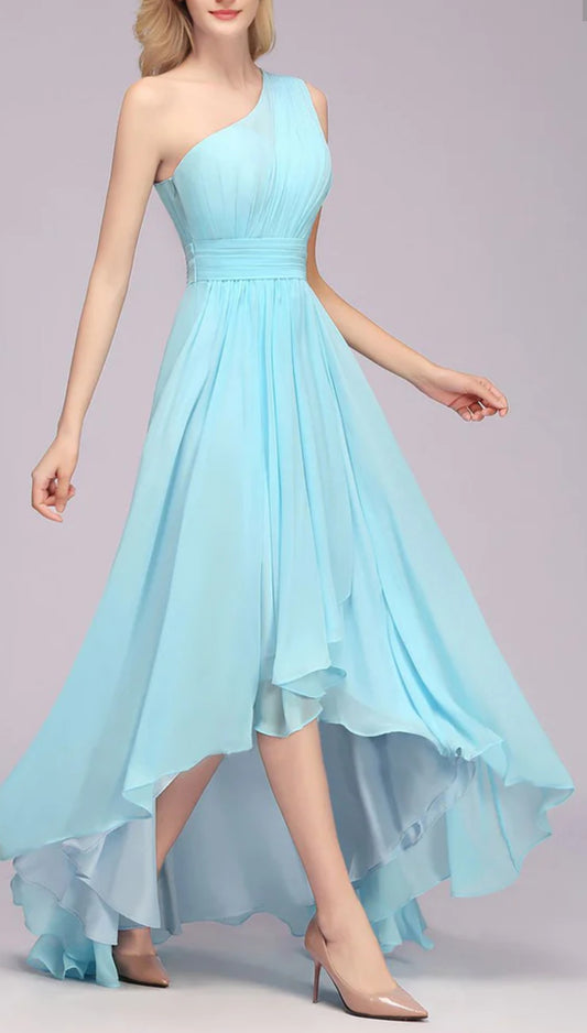 Sky Blue One Shoulder High Low Dress