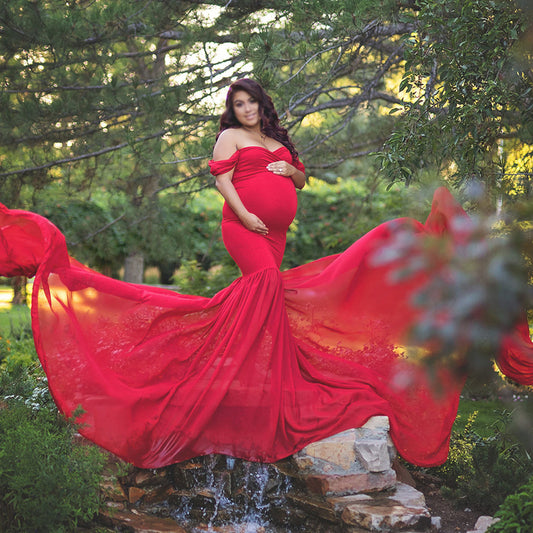 Red Lycra and Georgette Maternity Photoshoot Gown