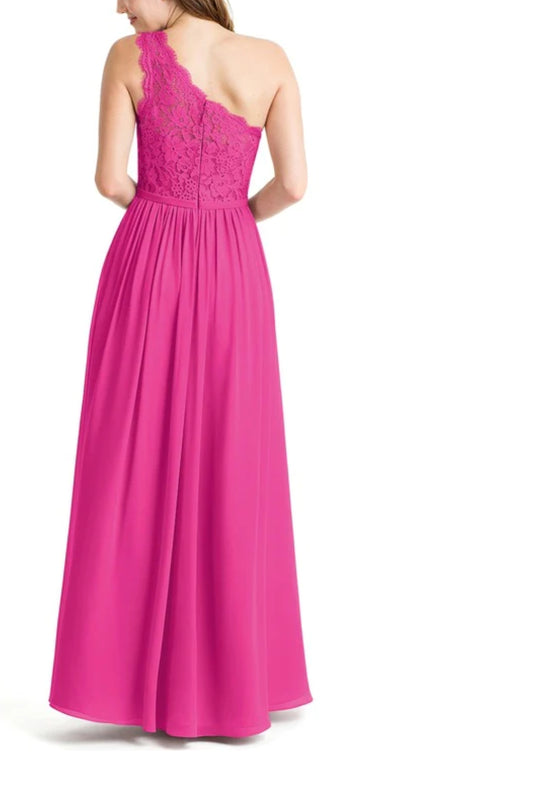 Maroon One Shoulder Floor-Length Georgette Bridesmaid Dress With Ruffle