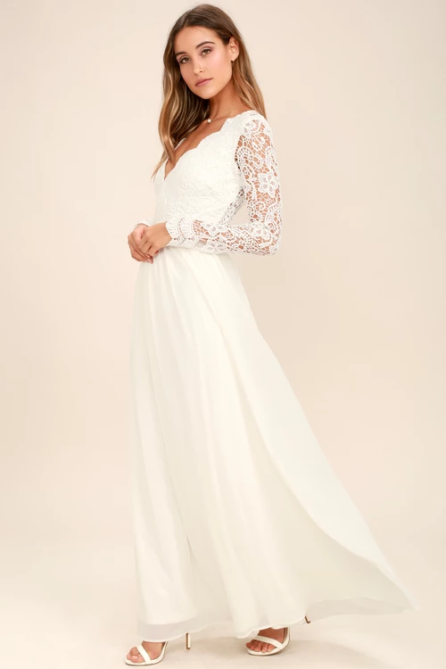 White Off Shoulder Georgette Maxi Dress