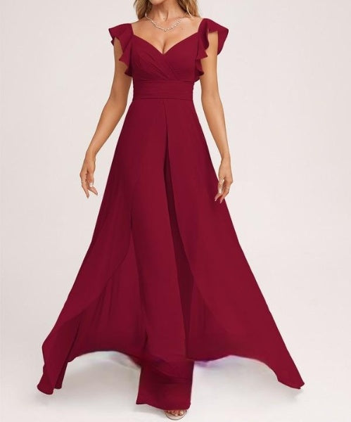 Broad V Neck Ruffled Sleeves Jumpsuit with Trail