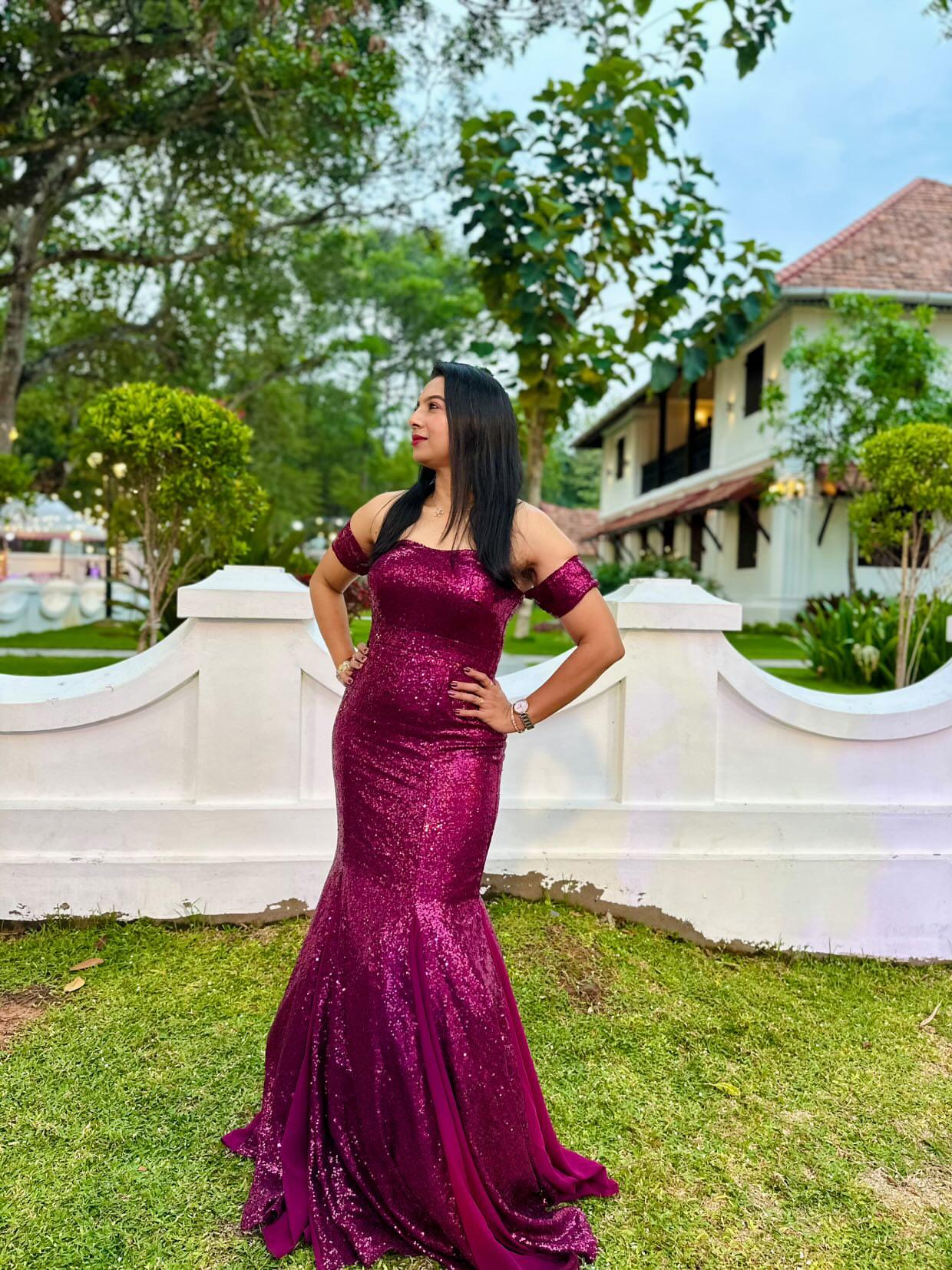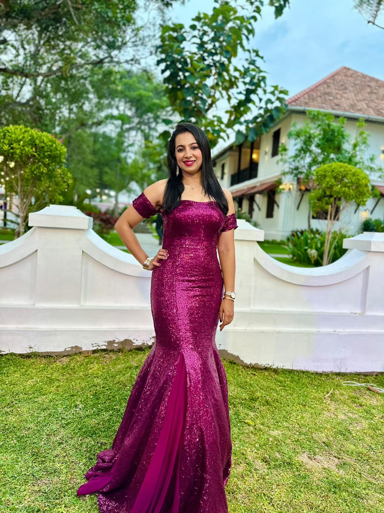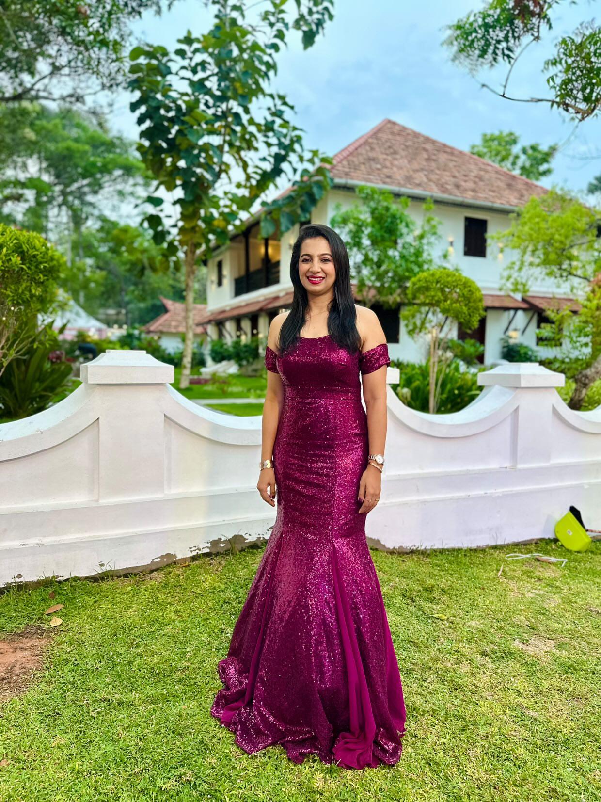 Burgundy Sequins Fishtail Cut Party Wear Gown with Cancan