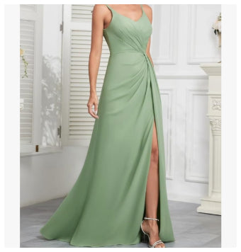 Mint Green Bridesmaid Dress with Bottom Drapes